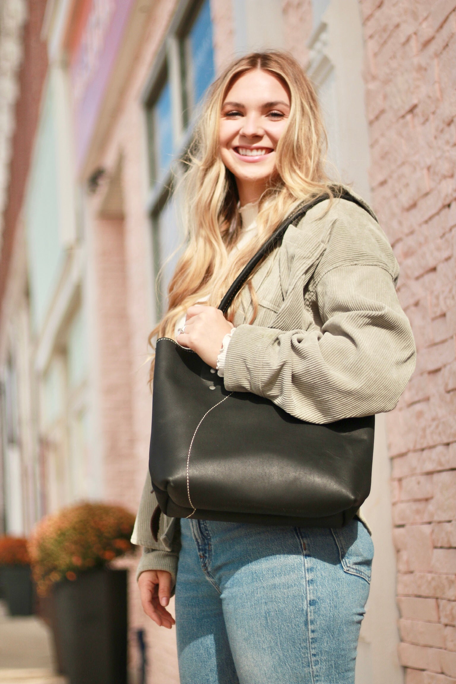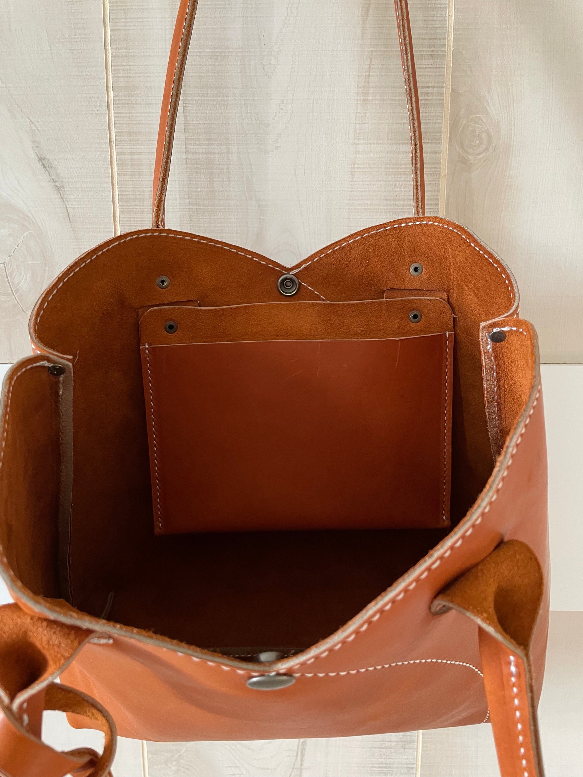 Our Leather Tulip Tote is the perfect purse to use for any occasion. With lots of space and a hidden pocket on the inside, this tote is sure to become your go to purse! Let the leather tulip tote become apart of your own unique journey!